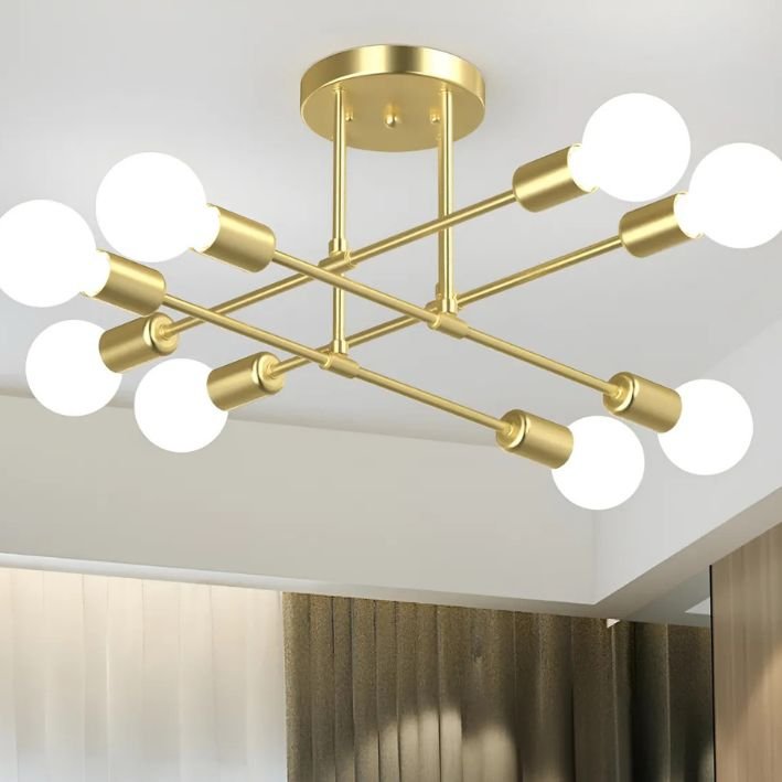 Material: Vela de chá, lâmpada sputnik de 6 luzes, feita de metal, pintada com spray de ouro preto, sem ferrugem. A elegância moderna adiciona estilo ao seu quarto com pequenas lâmpadas para decoração de casa.